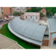 El nou paviment restaurat segueix les juntes i mides de l’anterior, incorporant dues tires de llautó que assenyalen el gruix de la traça del mur esquerra de l’antiga església romànica i un paviment de vidre per permetre la visió de les restes del mur sud de l’església romànica a través d’una cambra ventilada, assenyalant un recorregut seqüencial de l’estructura arquitectònica i la historia constructiva de l’edifici des del segle XII fins als nostres dies.