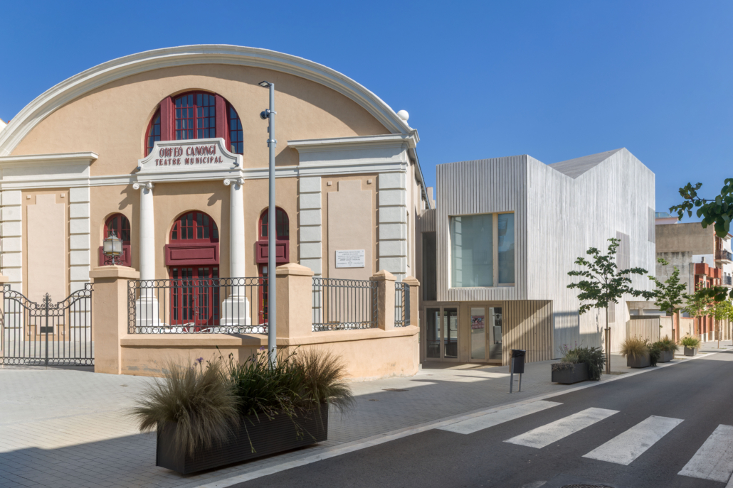 El nou edifici annex garanteix un accés al teatre funcionalment adequat per a la capacitat d’unes 350 persones. Formalment pretén alinear-se amb el carrer i generar una correcta transició dels edificis residencials amb alineació a vial i la orientació del casal. A l’hora proposa una relació respectuosa amb la façana principal amb l’escala adequada per tenir una bona lectura dels valors patrimonials de l’edifici original.